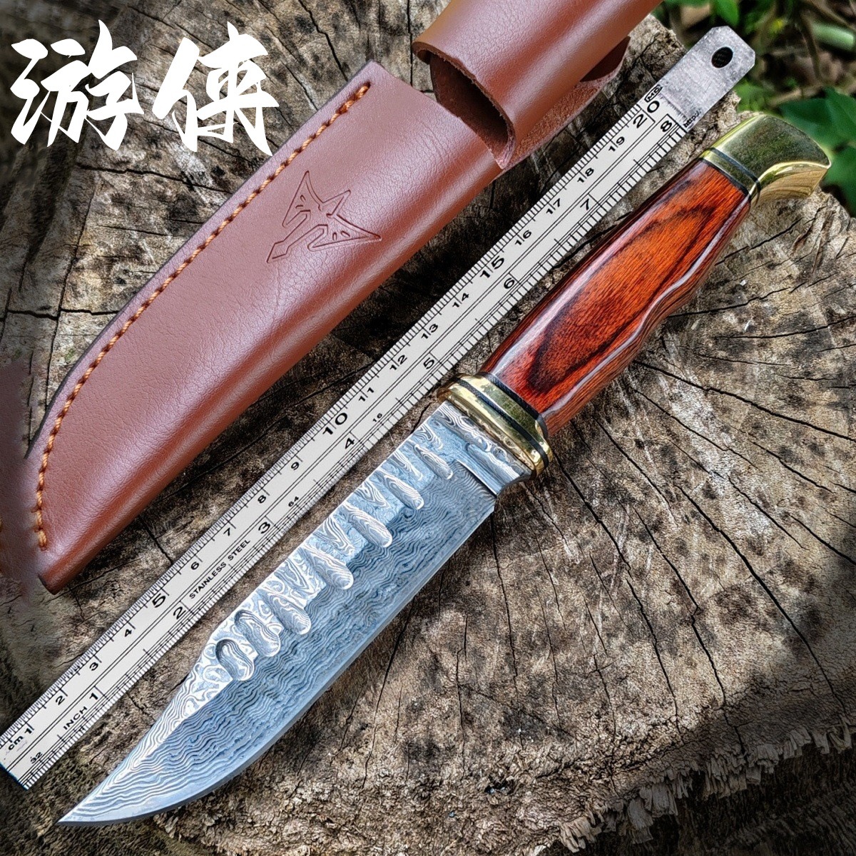 レンジャーダマスカス鋼フルーツナイフ家庭用多目的ナイフ内モンゴルハンドハンドル羊肉ナイフシャープポータブルナイフ
