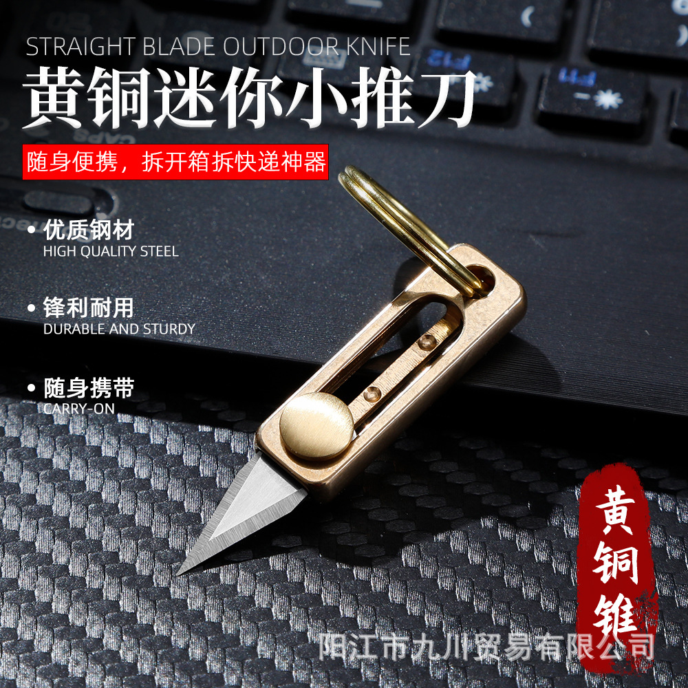 真鍮のミニナイフの速達は箱のナイフを開けます。真鍮の多機能ナイフは押し引きします。