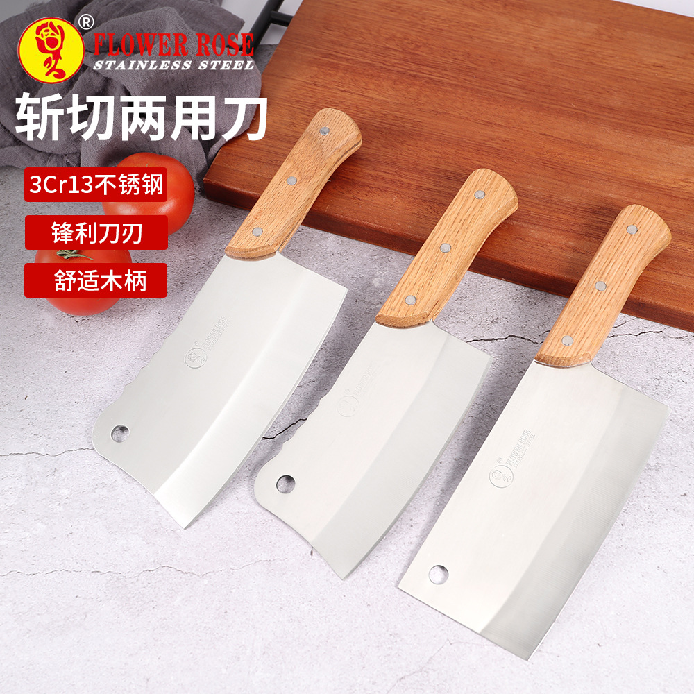 FLOWER ROSE骨切り刀ベトナム大切り刀家庭用ステンレス一体挟み木の柄を厚くして料理を強めます。