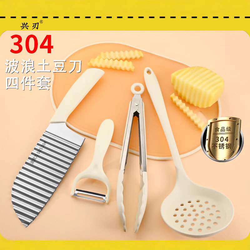 竜泉刃物セットネット赤組み合わせ鍛造家庭用ジャガイモ切りナイフ食品クリップ漏れスプーン台所シリコン調理器具