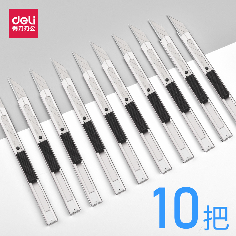 デリ30度カッターナイフ、小型カッターナイフ、壁紙切断用ステンレス鋼ハンドカッター、紙切断刃、鉛筆削り10本