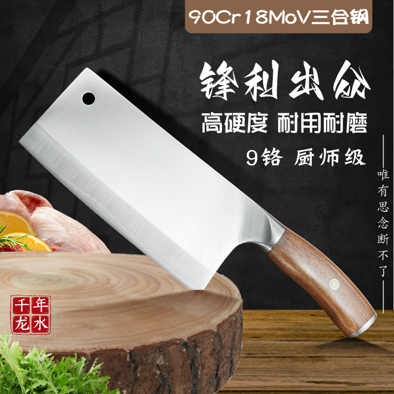 大足龍水包丁家庭用超高速9クロム18モリブデンバナジウム三合ステンレス鋼を挟んで、野菜を切って肉を切る刃物を鍛えます。