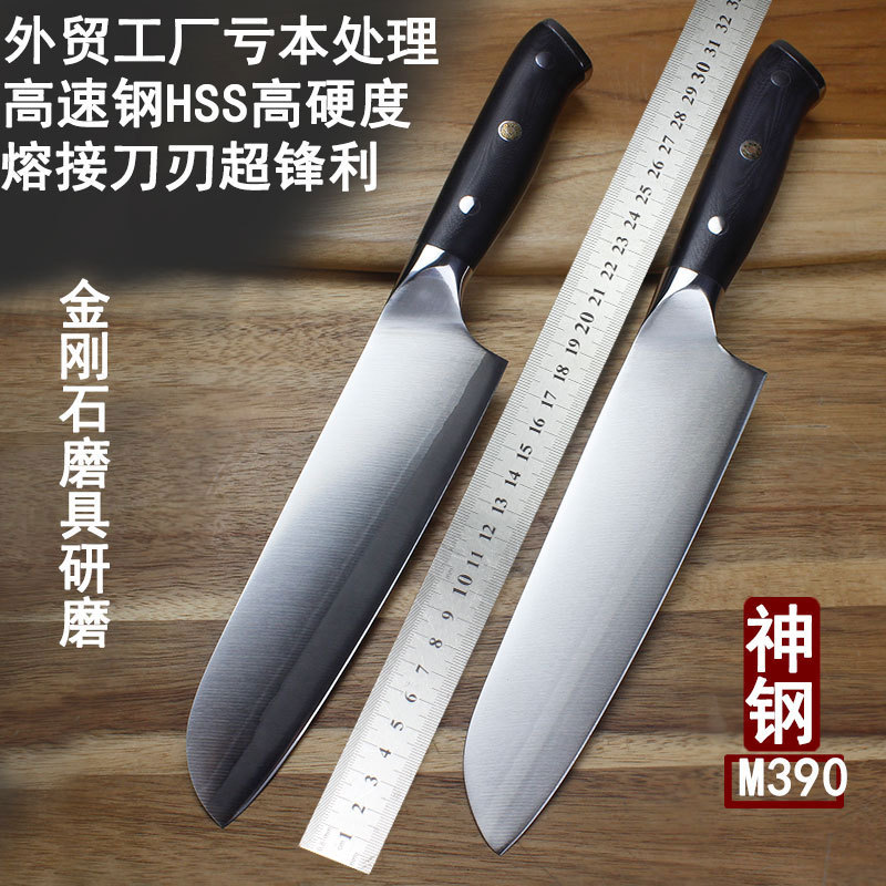 神鋼三徳刀料理人料理刀m390超鋭利で耐久性のあるコック刀高速鋼溶接刃口工具鋼