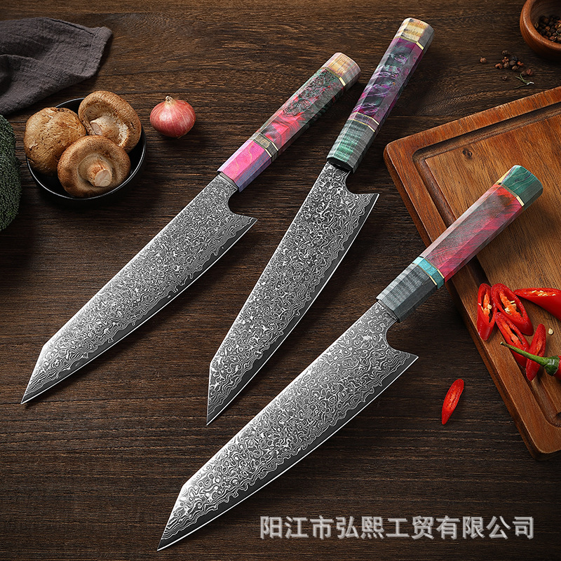 国境を越えたダマスカスVG10シェフナイフ料理人切菜肉包丁樹脂貝殻ハンドル陽江シェフナイフ