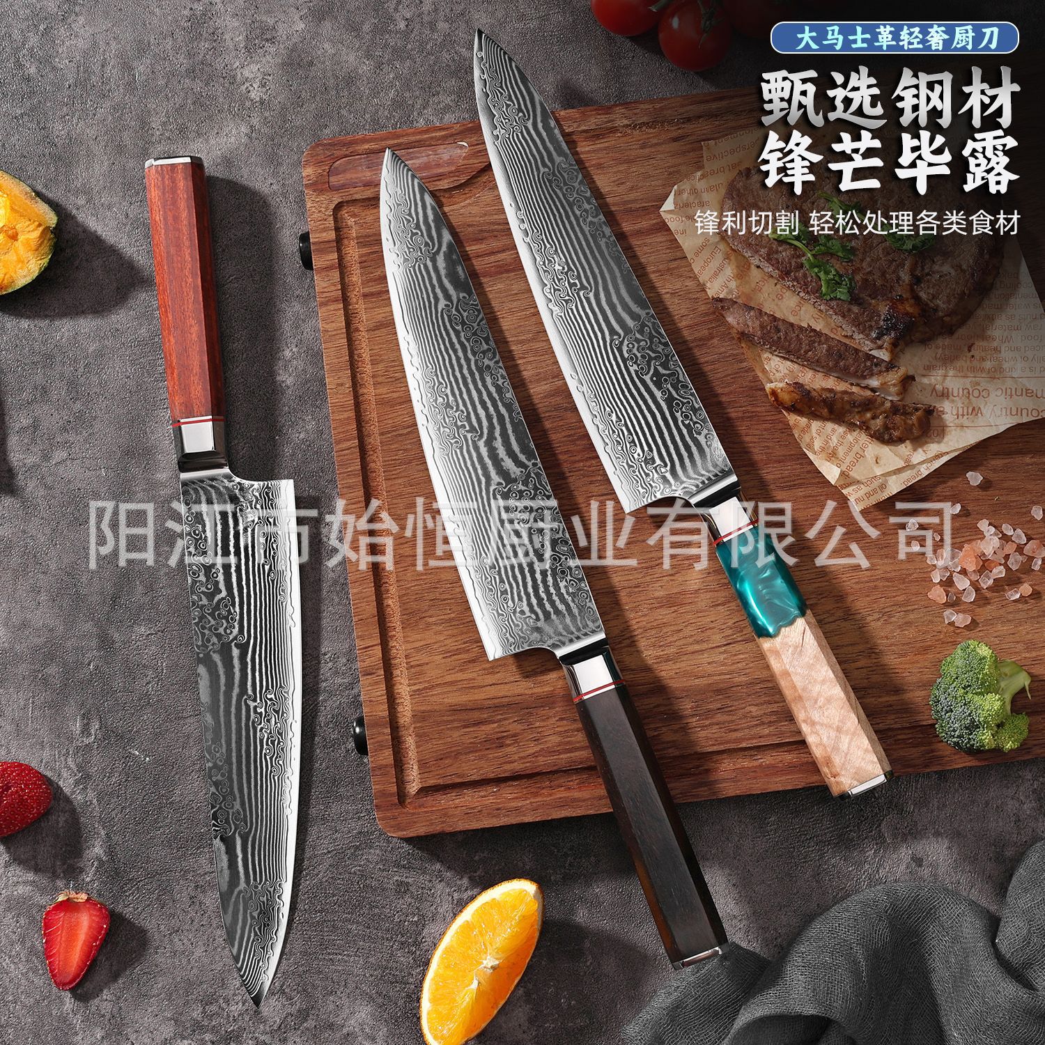 対外貿易の輸出の越境する商品の供給源の日の金のダマスカスの紋様のステンレスの台所の刃物