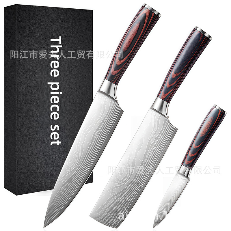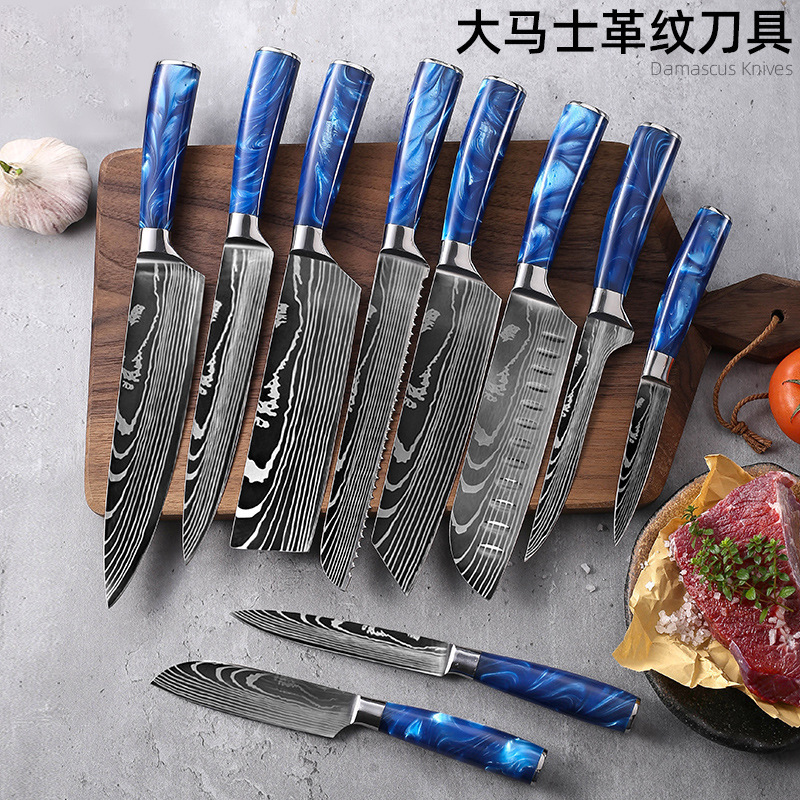 クロスボーダー既製キッチン洋包丁三徳包丁日本料理樹脂ハンドルダマスレーザー模様包丁