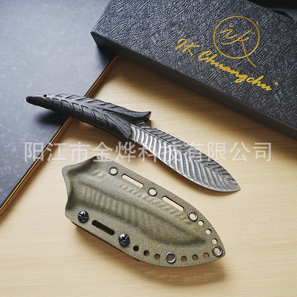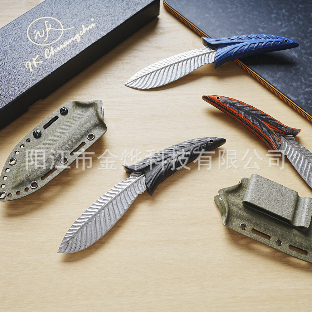 粉末鋼キャンプナイフアマゾンアウトドアナイフ鞘羽模様の葉ナイフ家庭用包丁 EDC サバイバルナイフ