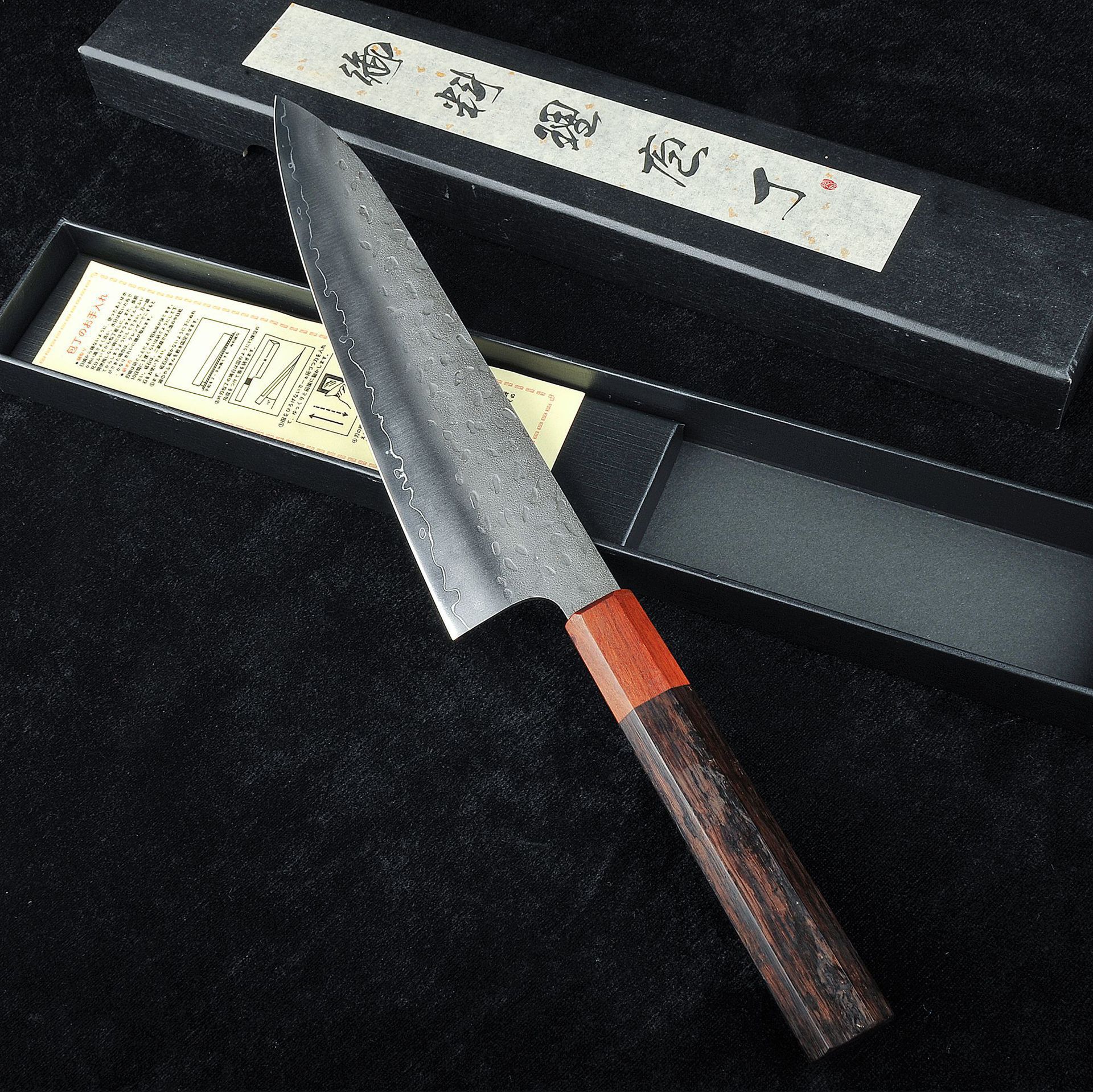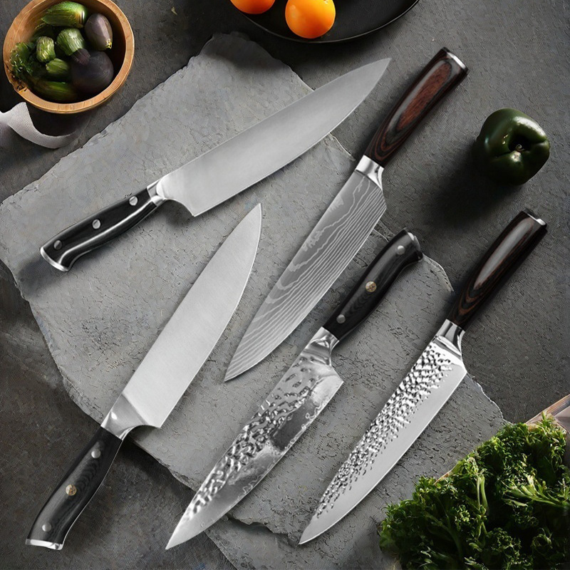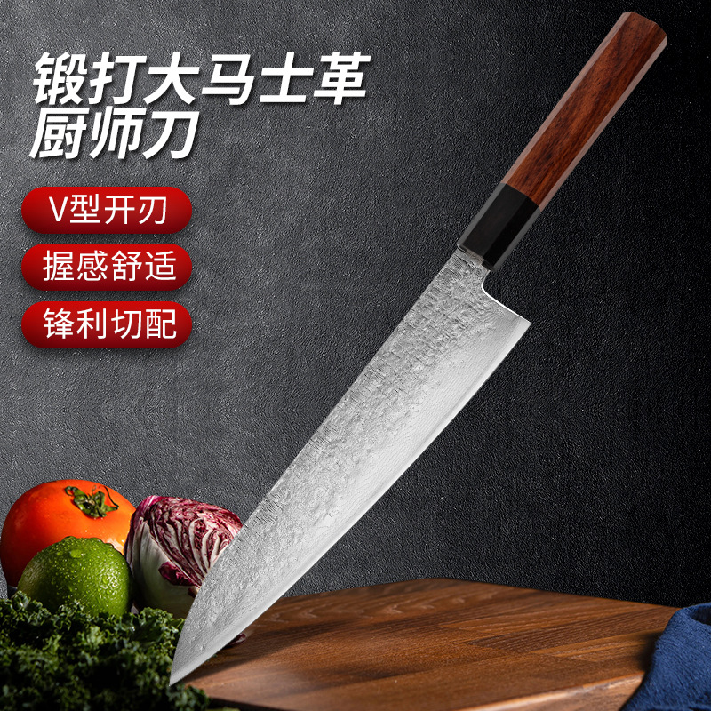 黒クルミハンドルシェフナイフプロシェフ黒クルミハンドル鍛造ハンマーパターンシェフナイフ魚鱗削り
