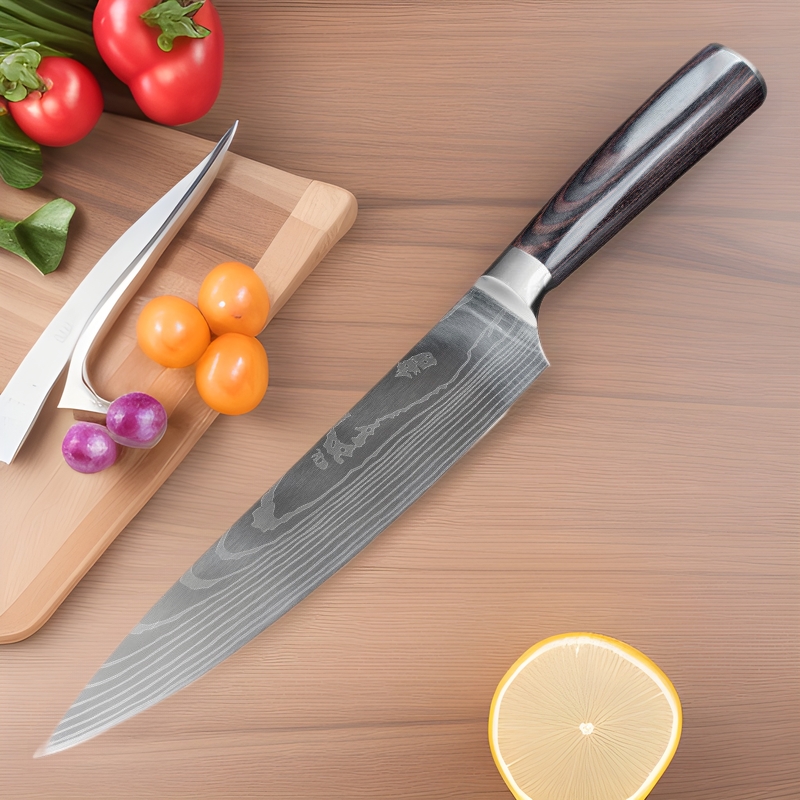 8inch ダマスカス鋼木製ハンドルシェフナイフスライスナイフキッチン肉ナイフ馬蹄ハンドルナイフクロスボーダー配送