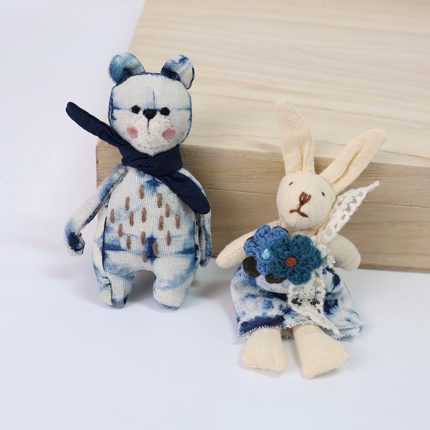エスニックスタイル絞り染め森生地漫画バニークマ子猫ブローチ人形アクセサリー手作りジュエリーピン