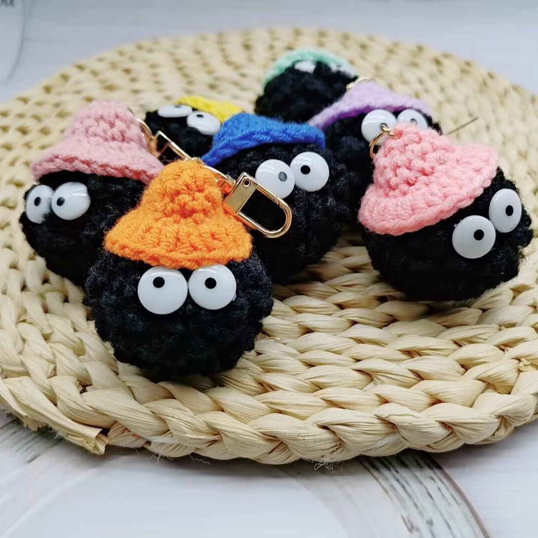 石炭ボール人形キーホルダー、アクセサリー、ぬいぐるみ、黒い石炭ボール、バッグ飾り、ギフト、卸売、可愛い石炭ボール