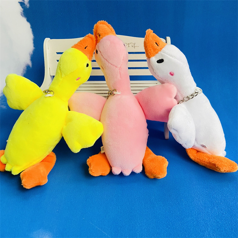 かわいいガチョウのぬいぐるみが学生のかばんのアイデアを持っている女性のバッグアクセサリーのキーホルダーの景品