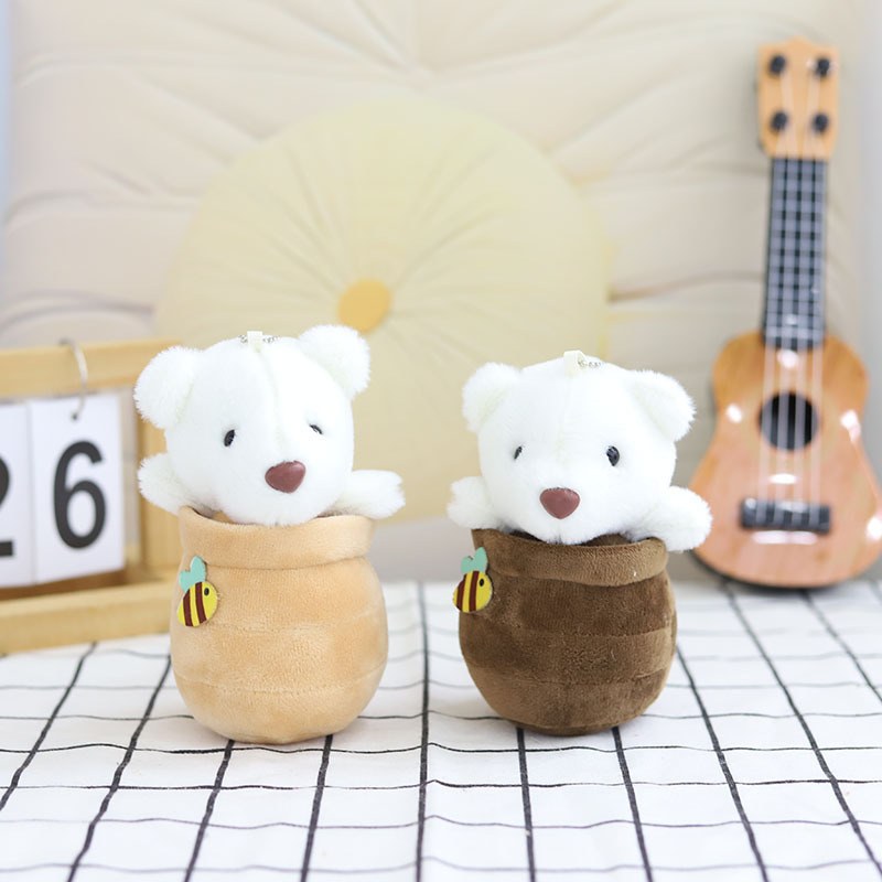 かわいい創意の蜜の缶のぬいぐるみの鍵は自動車の漫画の学生のカップルのかばんのペンダントを掛けて贈り物を飾ります。