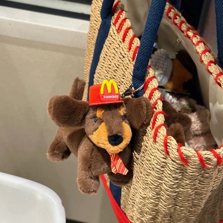 かわいいソーセージ犬のぬいぐるみのバッグに飾られた漫画の子犬の毛のぬいぐるみのキーホルダーにアイデアプレゼントを飾る