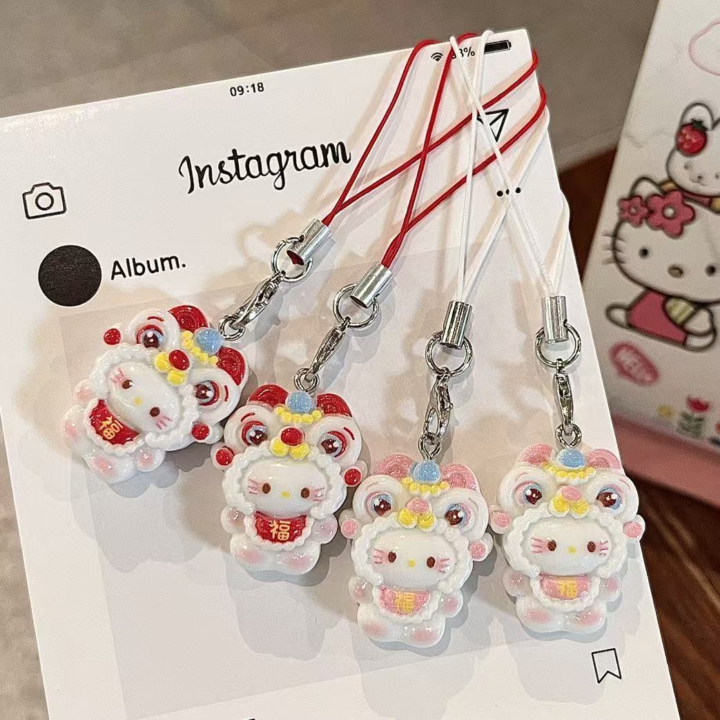 かわいい新年目が覚めたライオンkt福気漫画ケイティは甘い少女の心の携帯電話チェーンカップルの親友のキーホルダーをストラップした