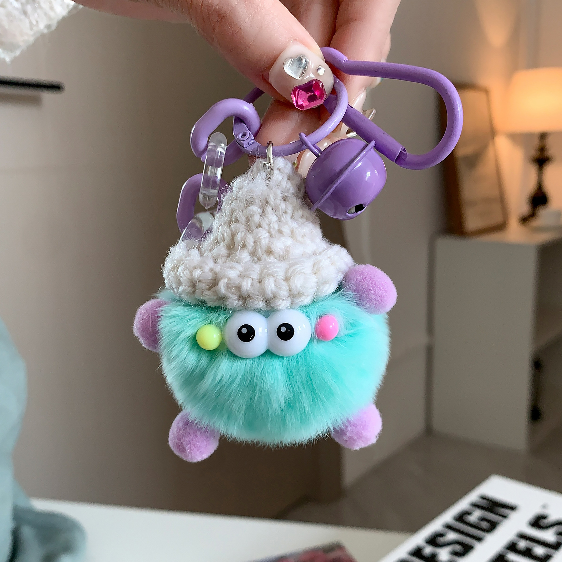 本物のウサギの毛の小さい怪獣の車のキーはネットの赤いinsのかわいいぬいぐるみのかばんを掛けて毛玉を飾ります。