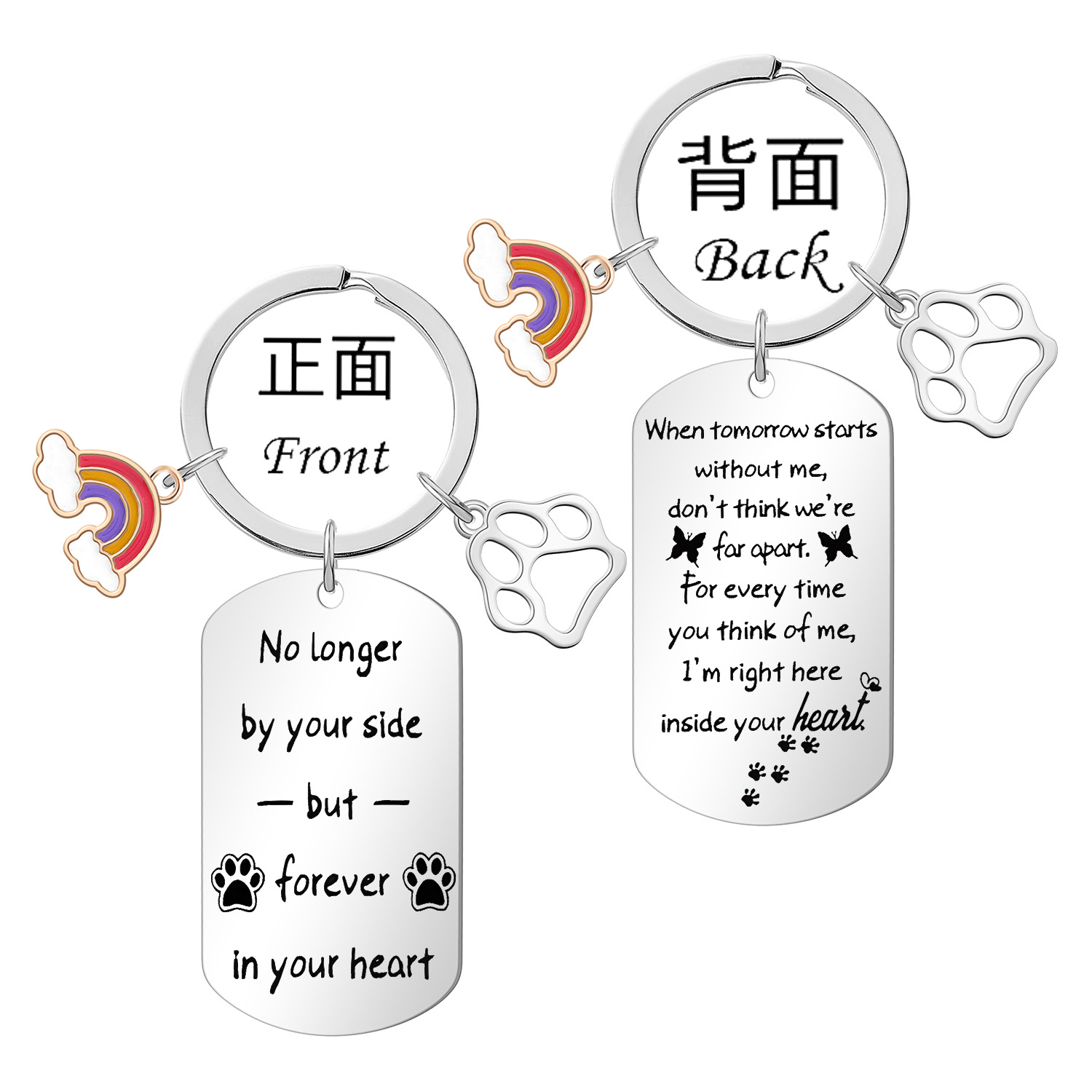 欧米の国境を越えてよく売れているステンレスの彫刻犬のキーホルダー愛犬と犬を失った人チタン鋼ペットのキーホルダー