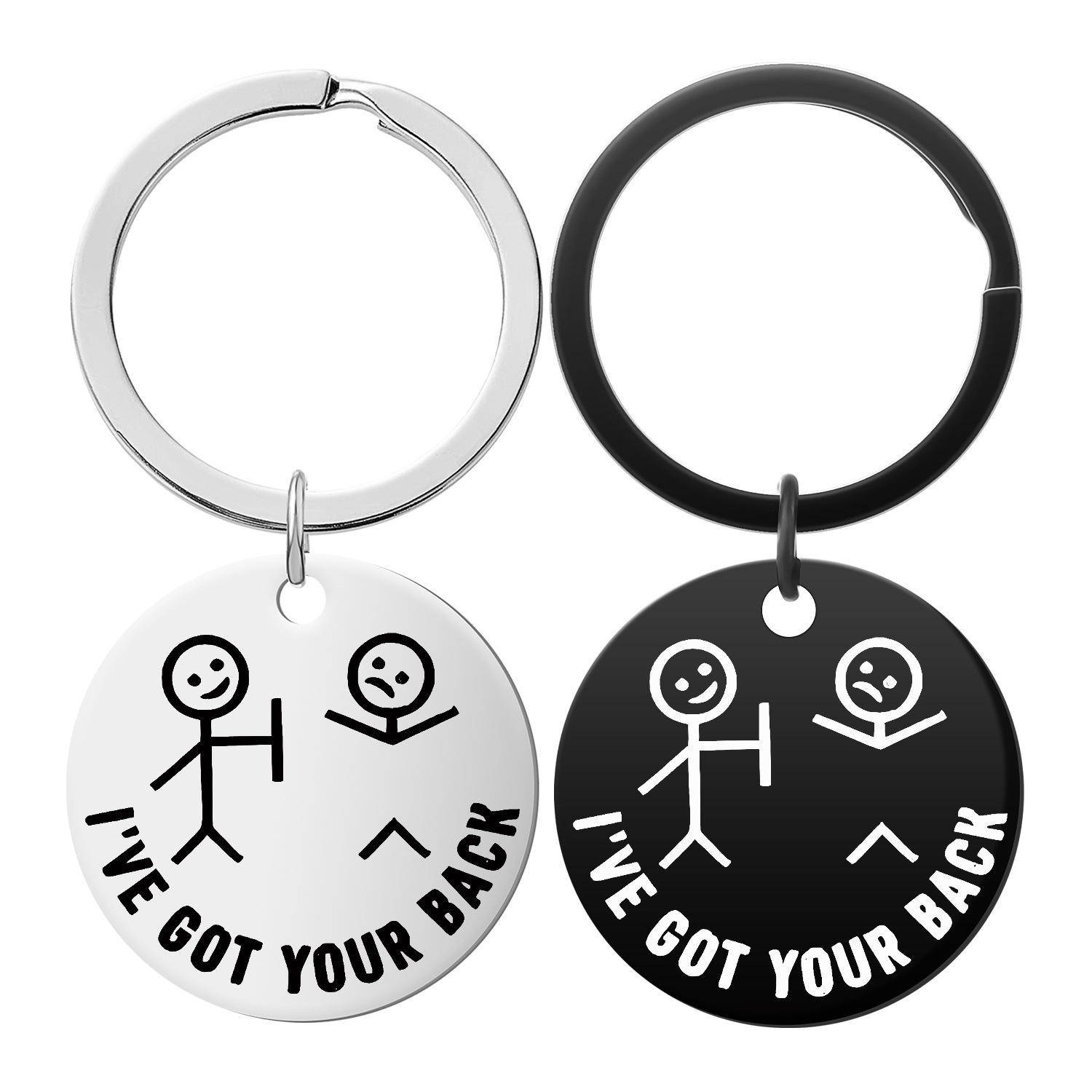 キーホルダーはステンレスの丸い札を研磨して国境を越えてよく売れています。マッチマンのキーホルダーは字を彫って感謝します。