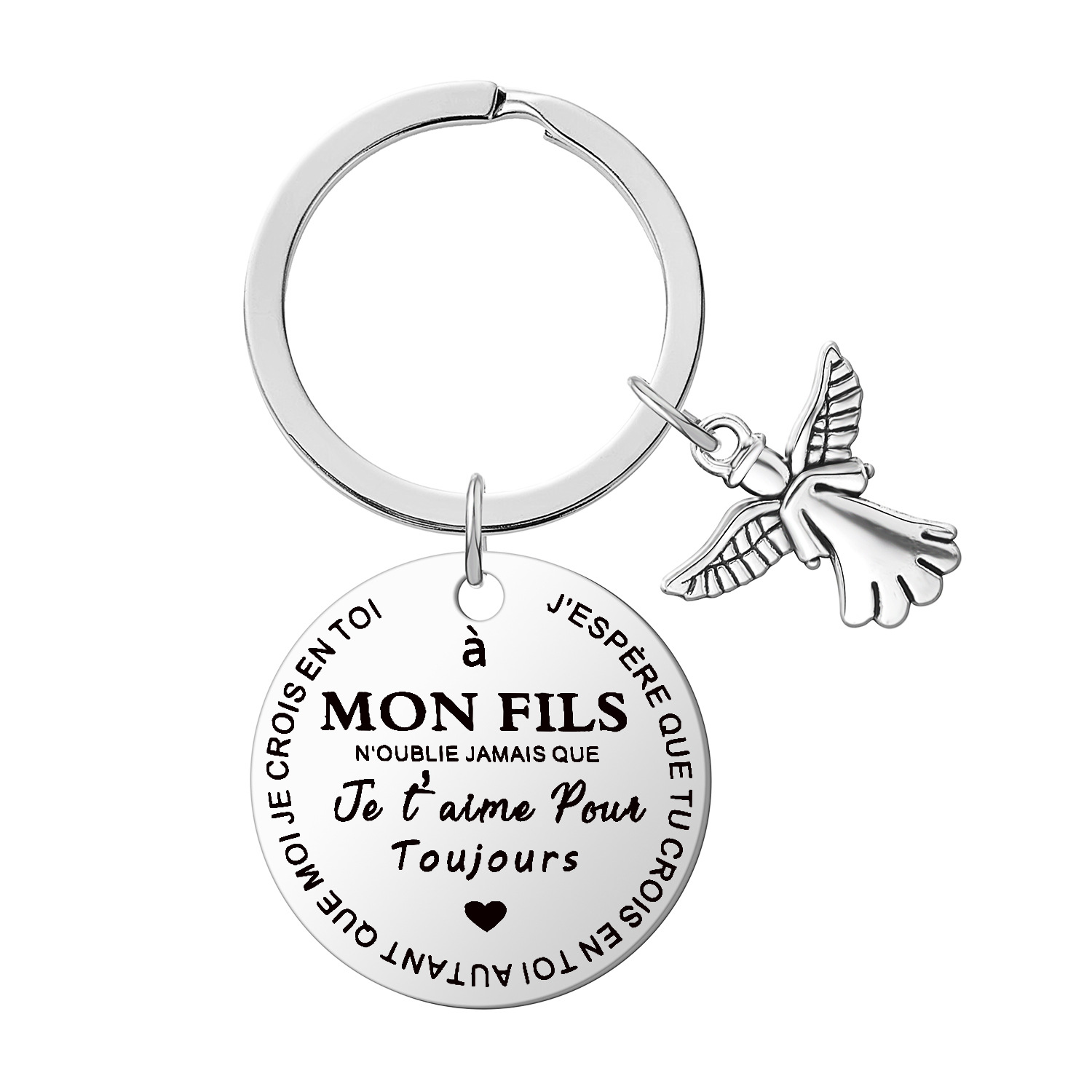 新品クロスボーダーステンレスキーホルダーフランス語MA monnoter息子娘祝日プレゼント記念ペンダント
