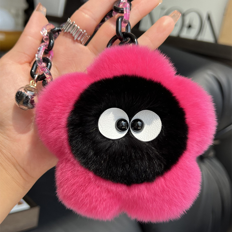 【かわいい花】本物のウサギの毛の車のキーホルダーのペンダントinsネットの赤い毛のボールのカバンのペンダント