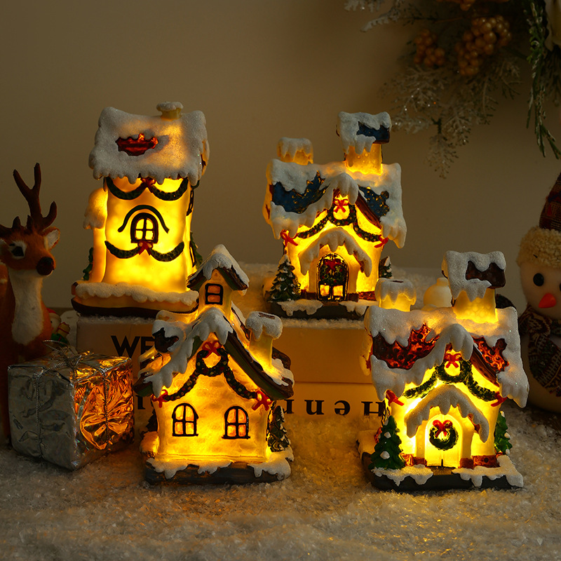 新しいアマゾンのクリスマスの装飾品の樹脂の発光の小さい家の小さい景観のヨーロッパ式の装飾品のクリスマスのプレゼント