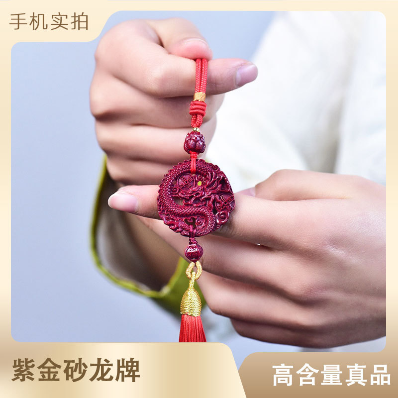 天然原鉱朱砂車は紫金砂竜牌のストラップ車を掛けて旅行本命年の男女のアクセサリーを持っています。