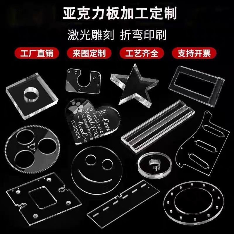 高透明アクリルレーザー切断異形カスタム有機ガラス板加工曲げパンチ彫刻UVシルク印刷