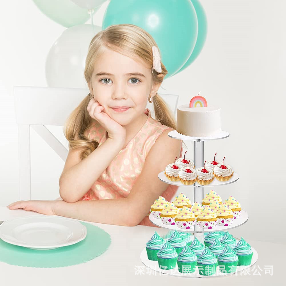 アクリル4層円形紙コップケーキ棚アクリル透明デザート果物展示棚は結婚式パーティーに適している