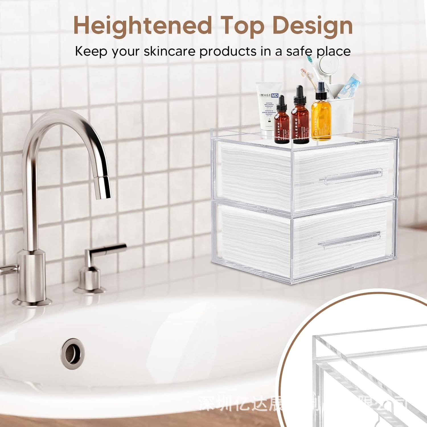 アクリルフェイシャルタオルボックス 2 つの引き出し付き透明フェイシャルタオルホルダークリーニングタオル用壁掛けメイクアップオーガナイザー