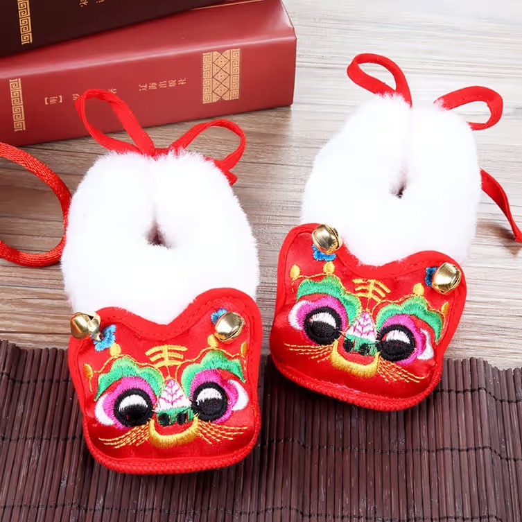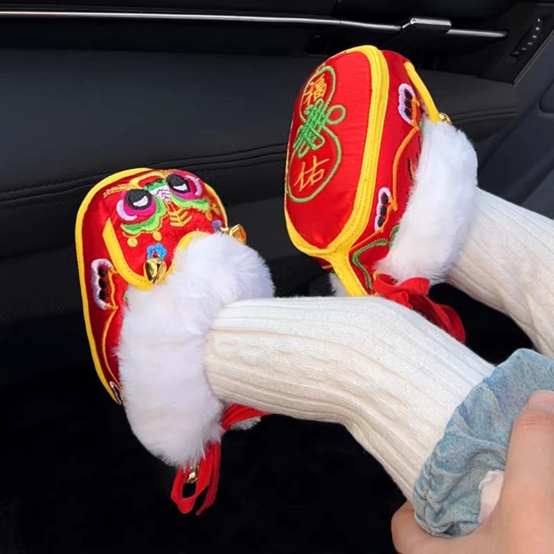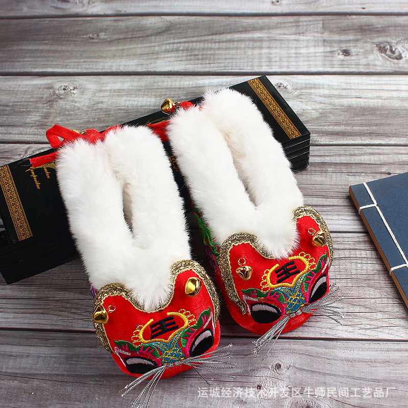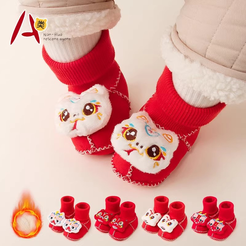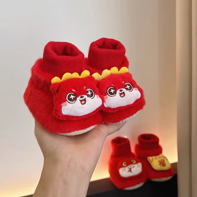 乳幼児0-12ヶ月1歳赤ちゃん秋冬満月虎頭靴靴下赤いお祝い新年保温ベビーシューズ6