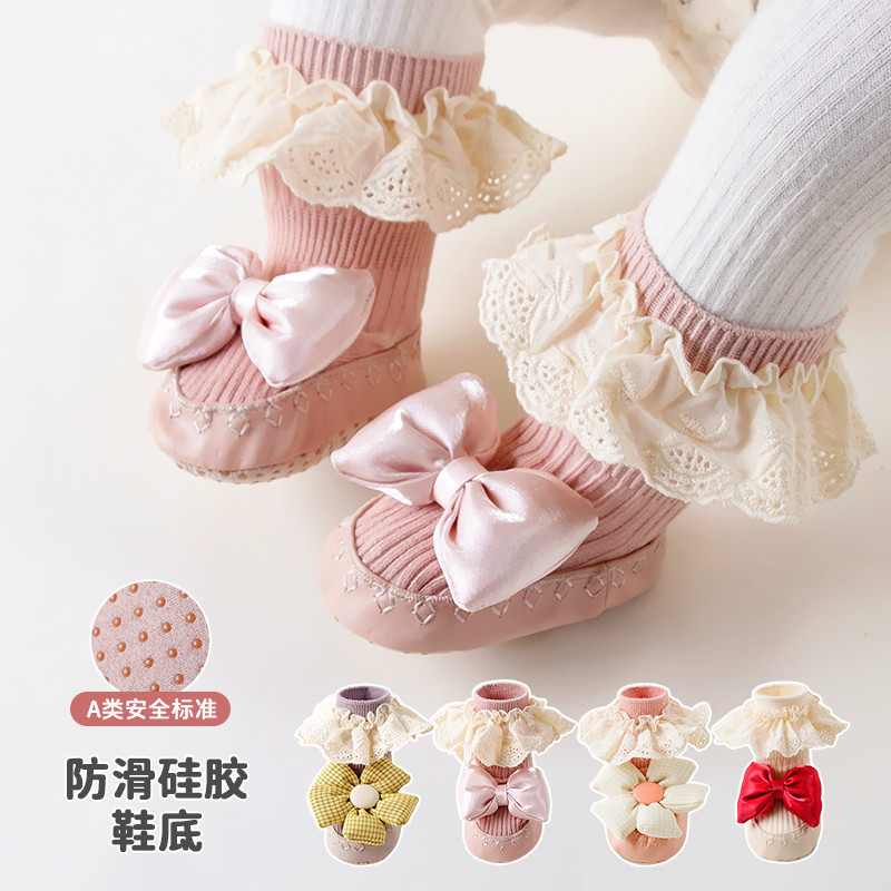 2024年赤ちゃんの足カバー春秋新入生の寝足カバー0-12ヶ月赤ちゃんの冬の保温とベルベットの靴