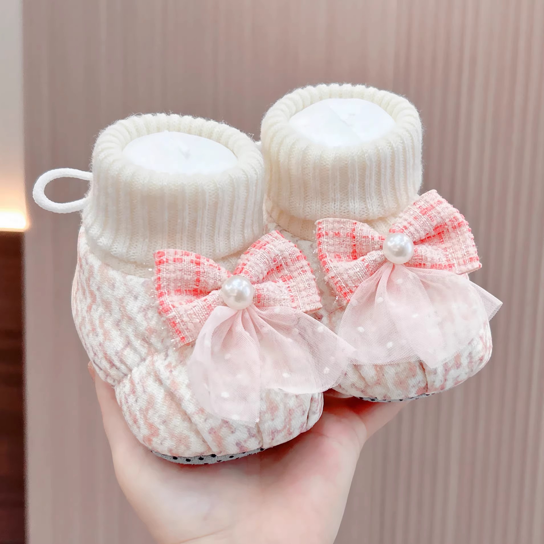 新しい冬のベルベット0-1歳の保温女の赤ちゃん3-8-9ヶ月の赤ちゃんの歩行前綿靴新生児靴下靴は柔らかい