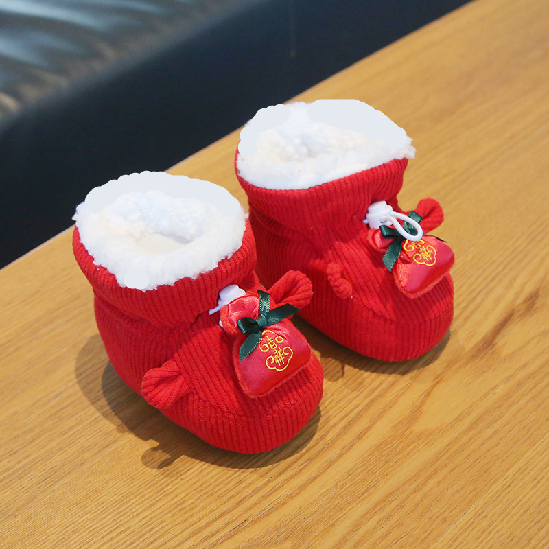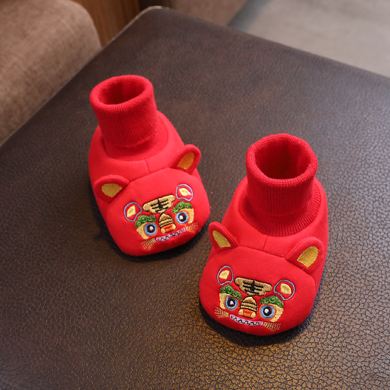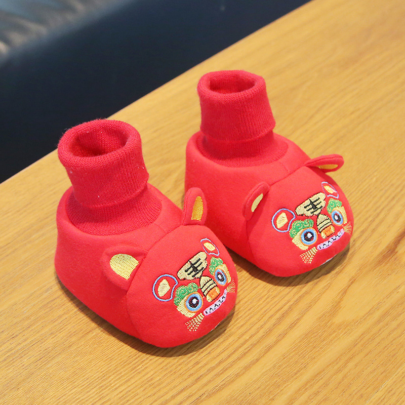 赤ちゃんの靴下の靴はとても赤いです。春と秋の薄い金は新年おめでとうございます。