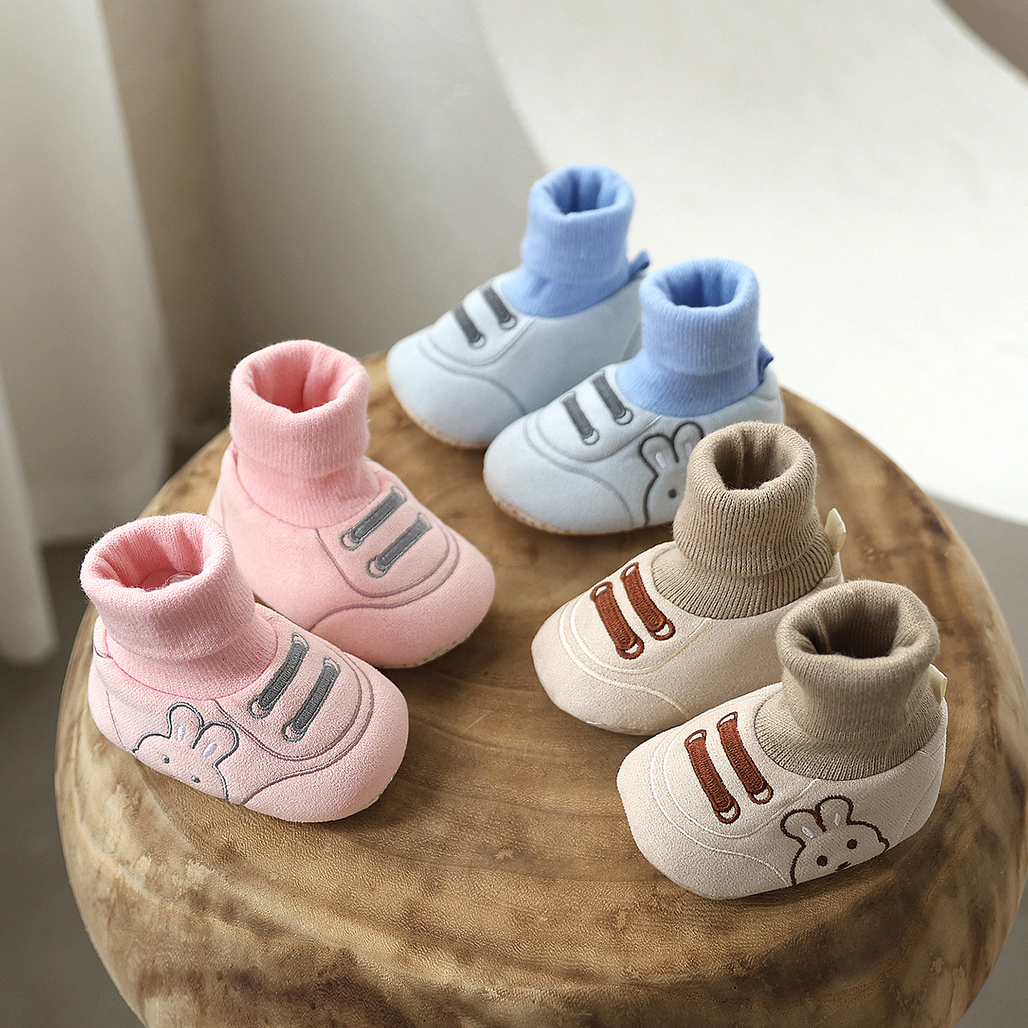 ベビーシューズ靴下春と秋の男女新生児保護足0-1歳2軟底学歩3-6月は冬に落ちない