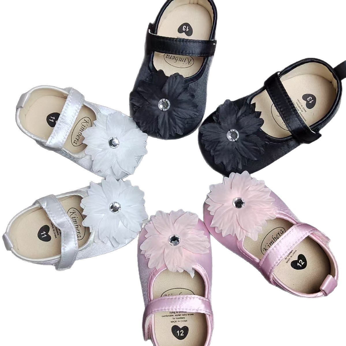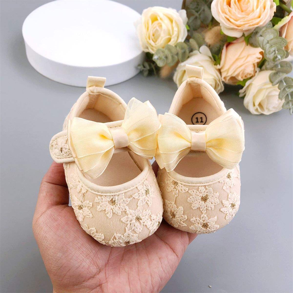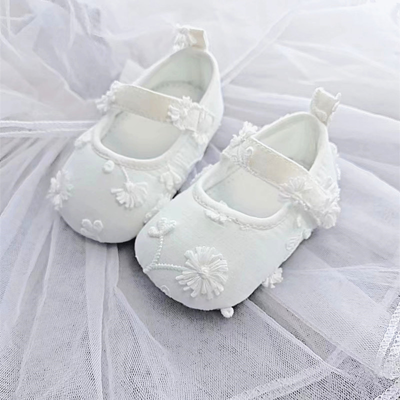 1歳0-12ヶ月ベビーパールフラワープリンセスシューズ刺繍入り甘いスタイルかわいいベビーラバーソール幼児靴