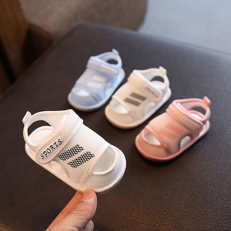 春と夏の新生児の靴と靴下 0-1-2 歳の柔らかい底のフロントシューズ幼児男の子と女の子幼児シングルメッシュサンダル