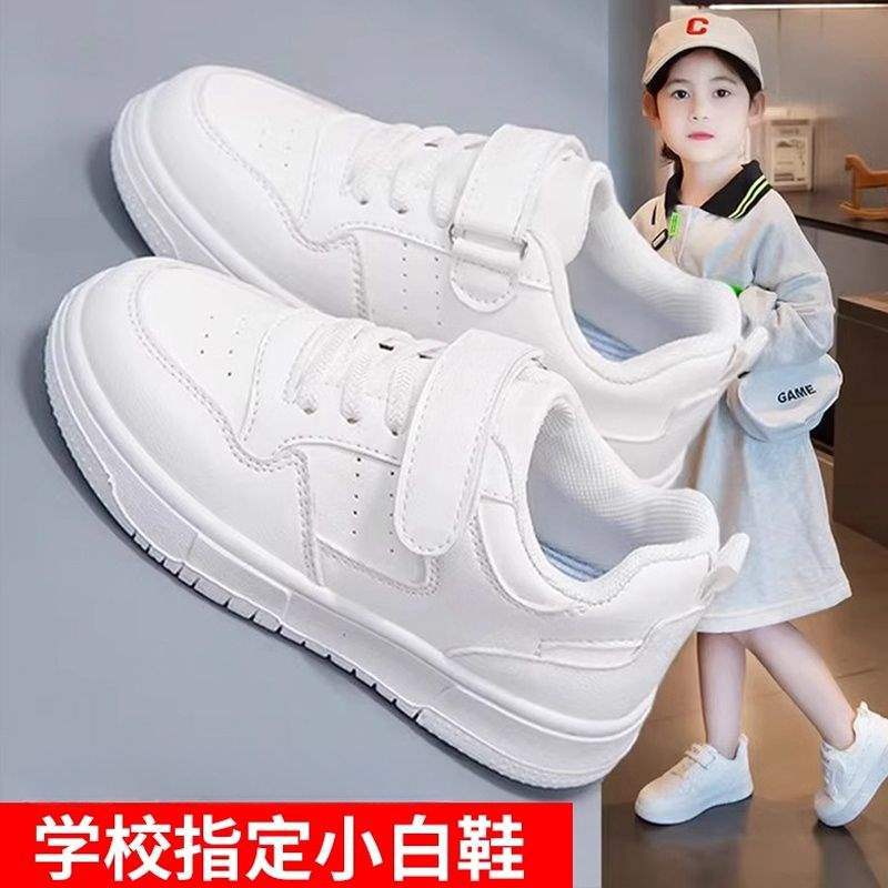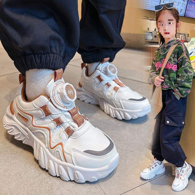 女の子のスポーツシューズ 2025 春と秋の新しい子供の多用途ファッションレザーダッドシューズ男の子のランニングシューズ白い靴