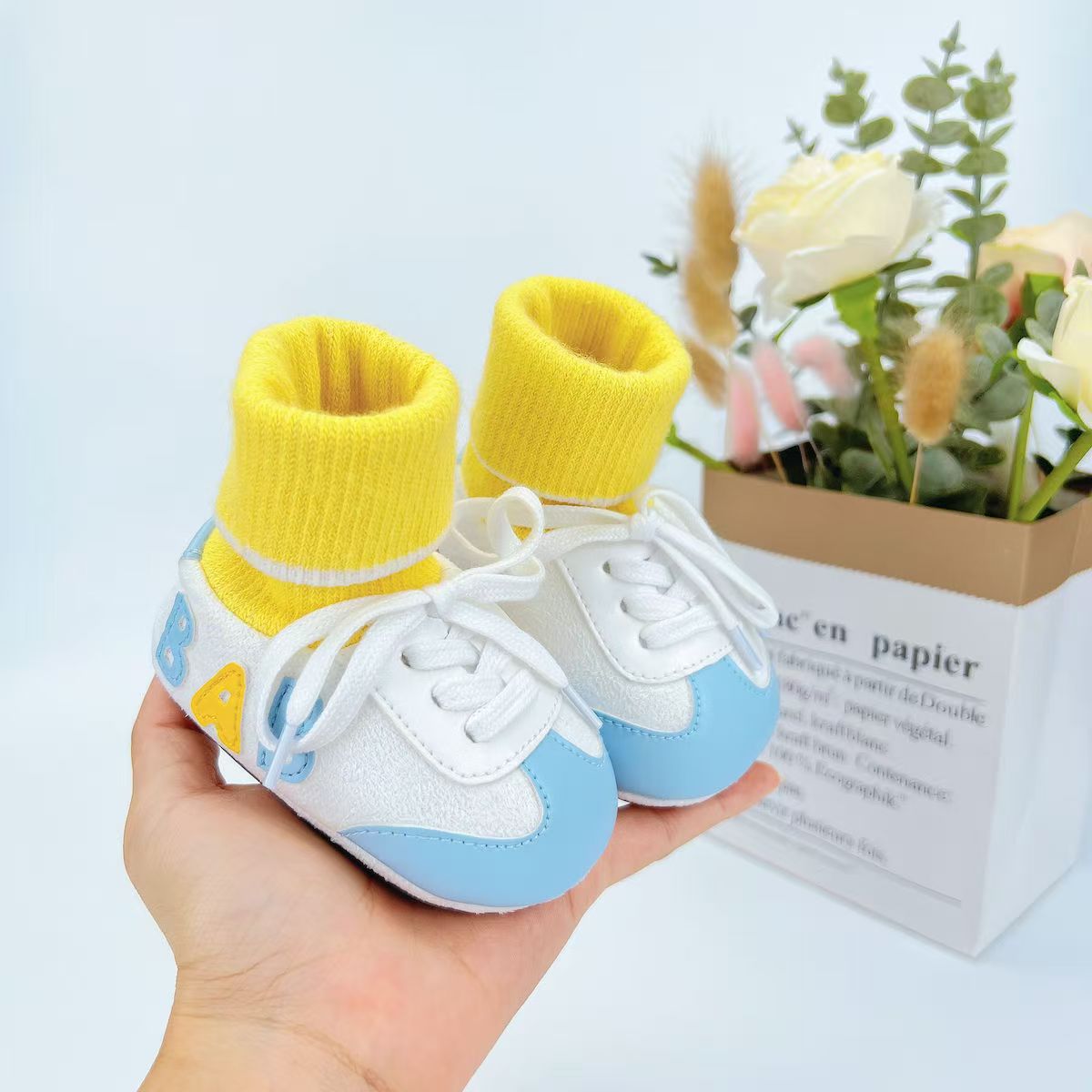 秋の新生児用0-1歳向け、柔らかい靴底で暖かく、脱げにくい、歩き始めの段階の女の子用シューズ、靴下シューズ、冬用