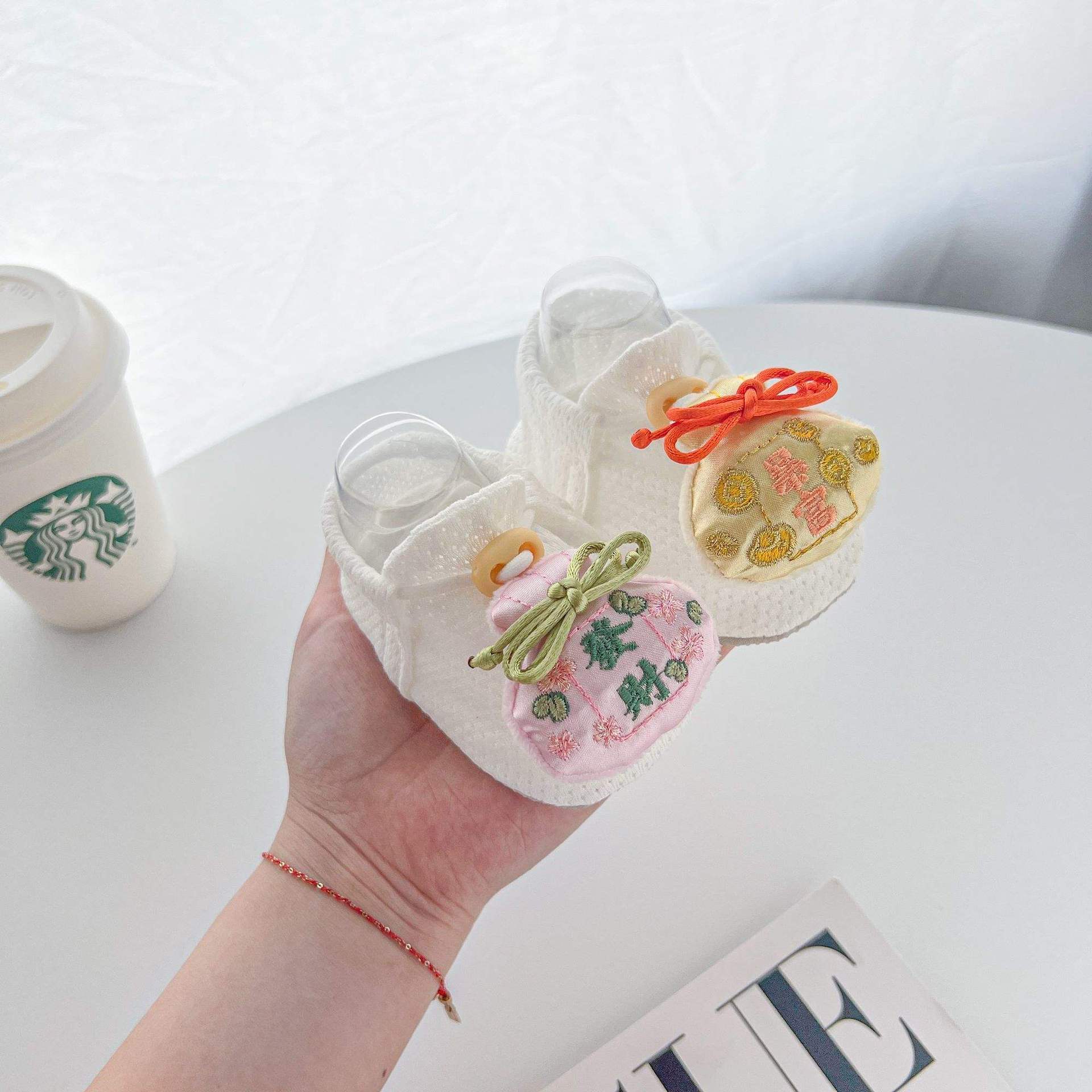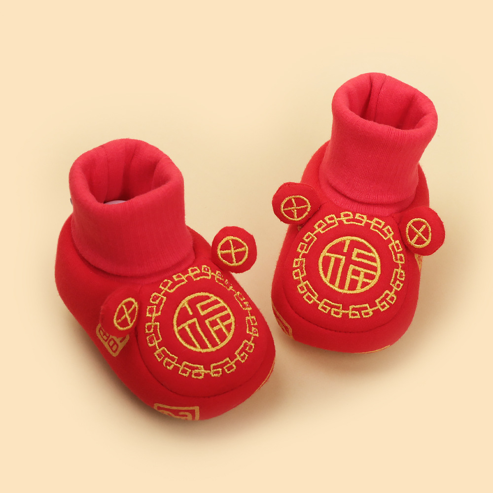 新年の冬厚くて暖かい新生児靴純綿赤い祝福の言葉が落ちないドットゴム底ベビー学習靴