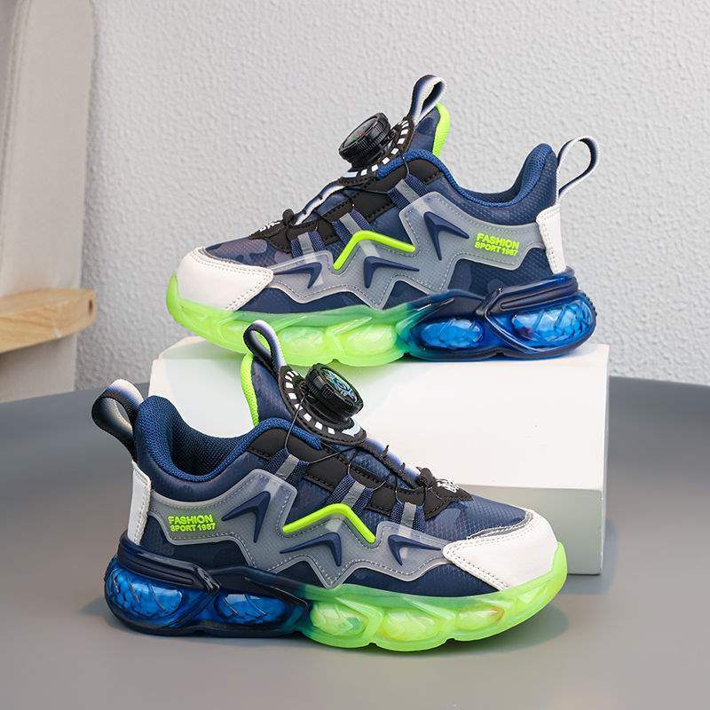2025 男の子と女の子のトレンディな靴秋と冬の新しい回転バックル大きな子供用エアクッションスポーツシューズ通気性のある男の子の春と秋