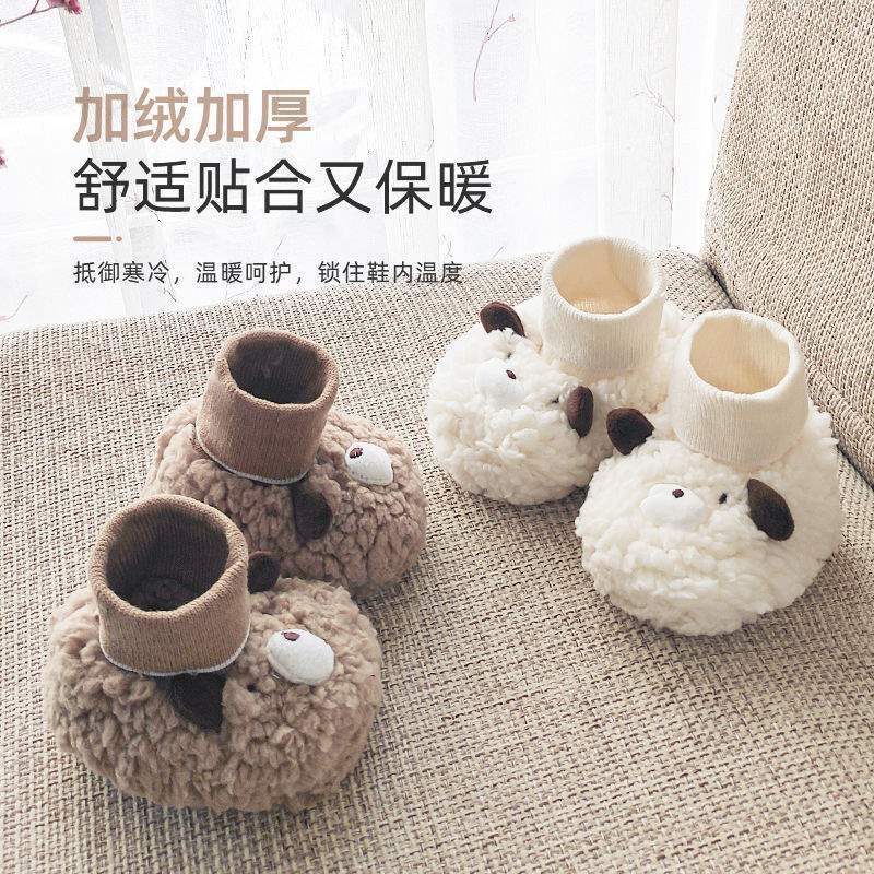 ベビーコットンシューズ冬0-1歳ソフトソール落下防止ソックスベビープラスベルベット厚く暖かいフットプロテクター6〜12ヶ月
