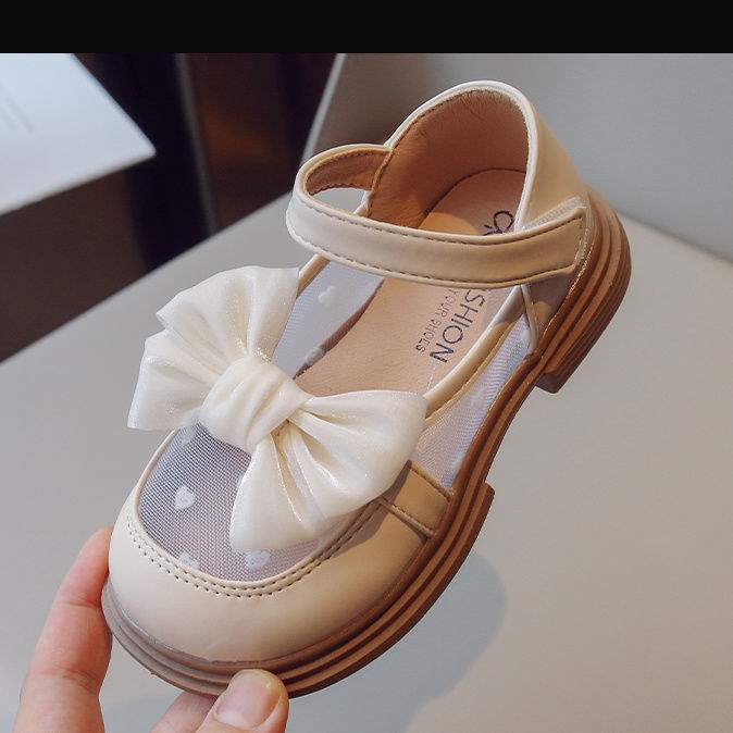 女の子のメッシュ薄い革靴 2025 春と秋の新しい女の赤ちゃんの靴子供のメッシュリボンプリンセスシューズ