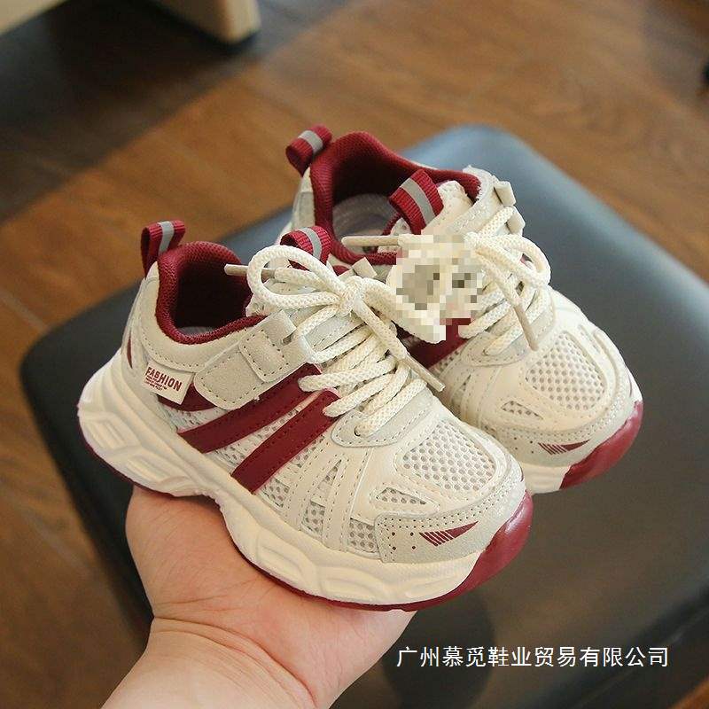 春と秋の新しい子供用スポーツシューズ、ティーンエイジャーと学生の靴、アンコラレッドソフトソールメッシュシューズ、通気性のある男性と女性のお父さん靴