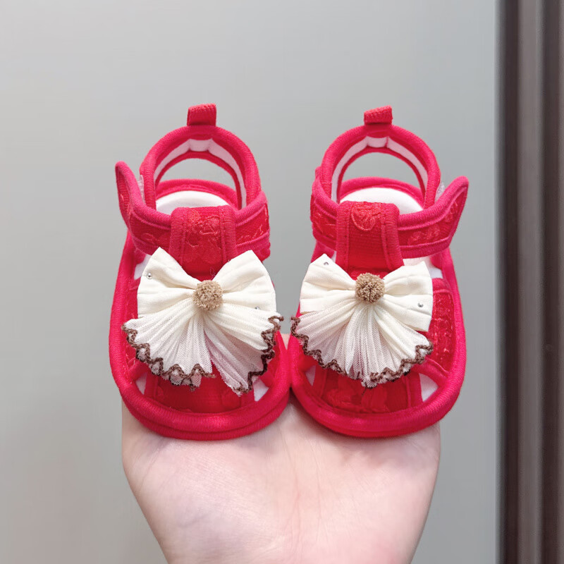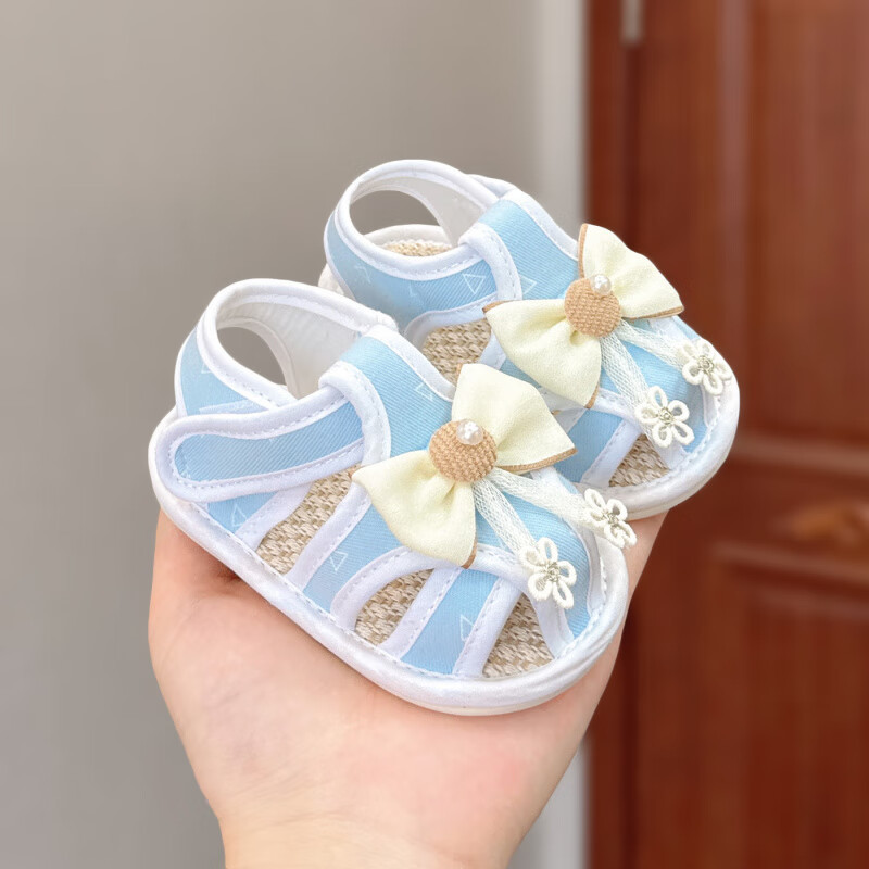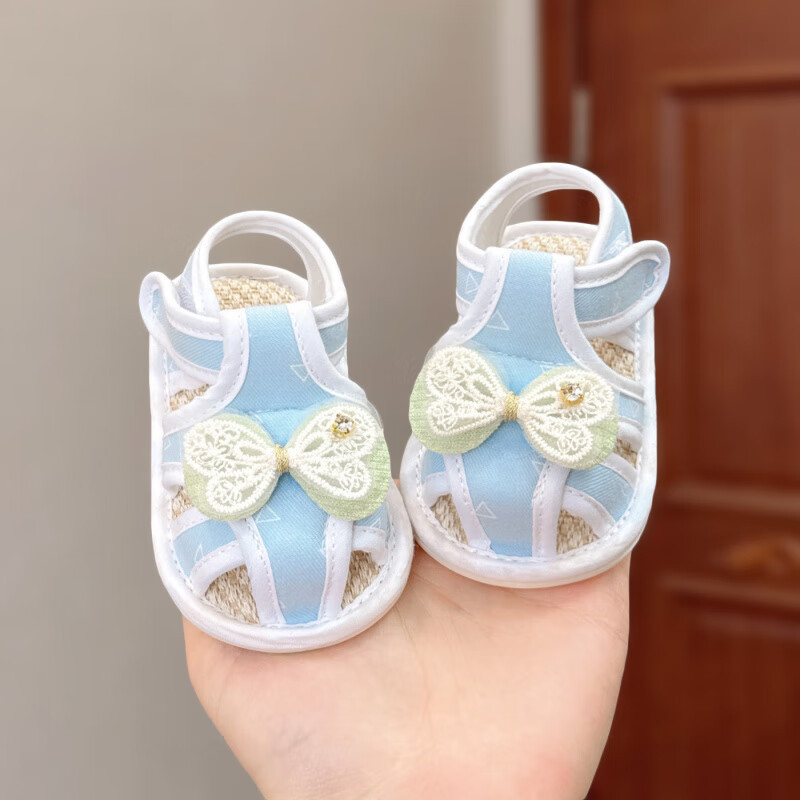 夏の小月齢の学歩サンダルの新入生の赤ちゃんの靴の前の靴の薄いタイプの柔らかい底の布の靴の子供の赤ちゃんは初めて生まれます。