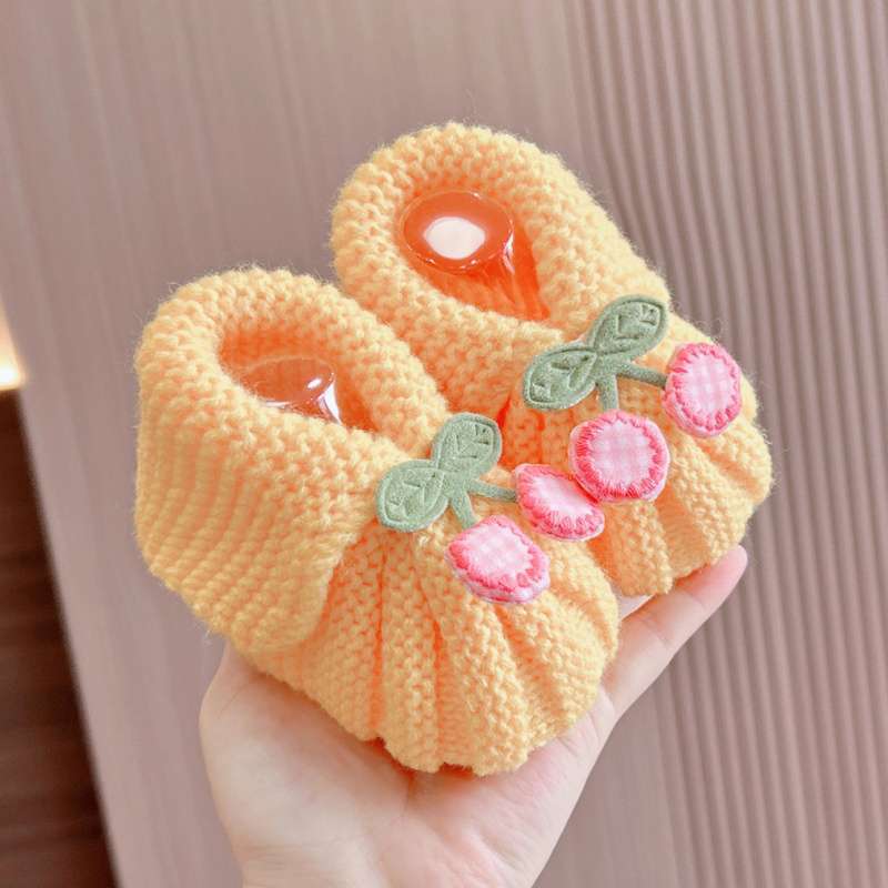 秋の四季の女の赤ちゃんのウールの靴、足を保護するベビーシューズ、プレステップシューズ、手編みの靴下、柔らかい底、レースアップ