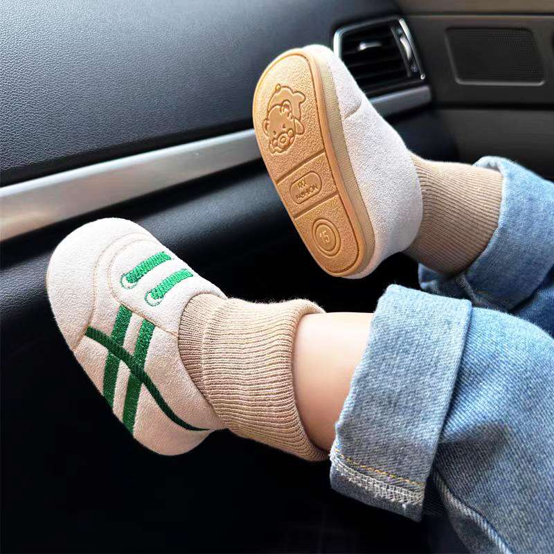 新生児靴下春と秋 - 生後 1 か月の男の子と女の子の柔らかい底のフットカバー、落ちない綿の靴