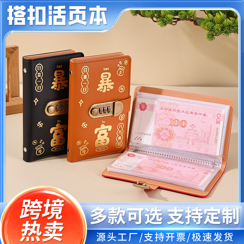 パスワードロック卸売現金新型貯金本革大容量クロスボーダー人民元収納帳収集帳紙幣