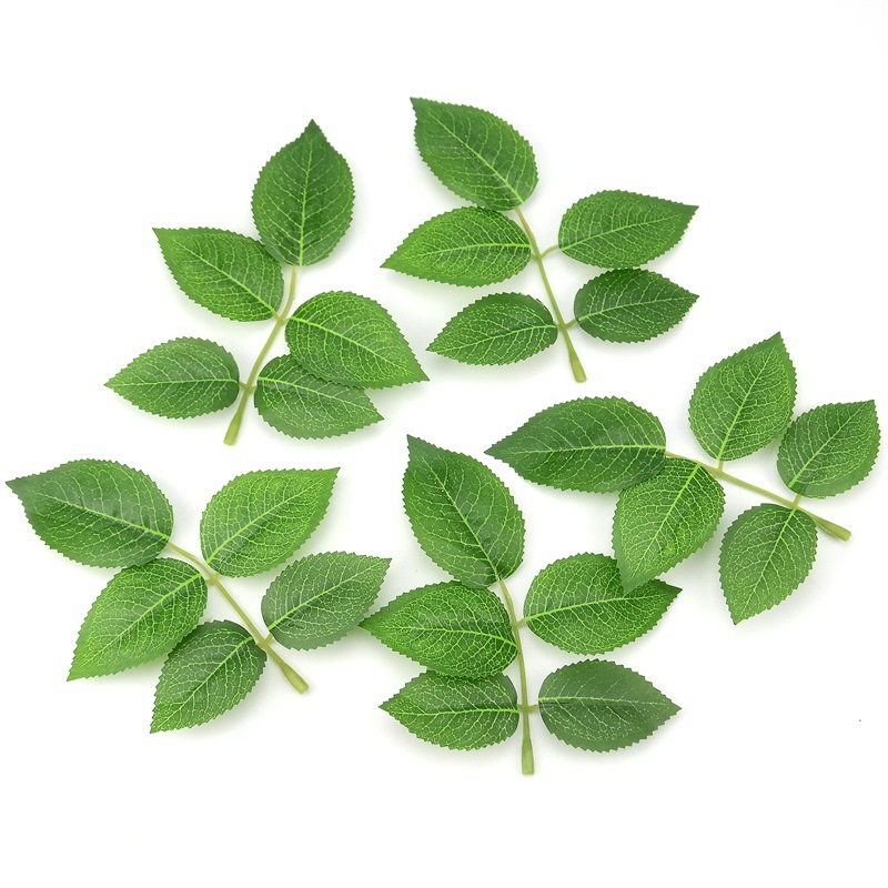 5枚のシミュレーションバラの葉の緑の葉の部品バラの葉の網の花の手作りのバラの葉の網の花の葉の装飾
