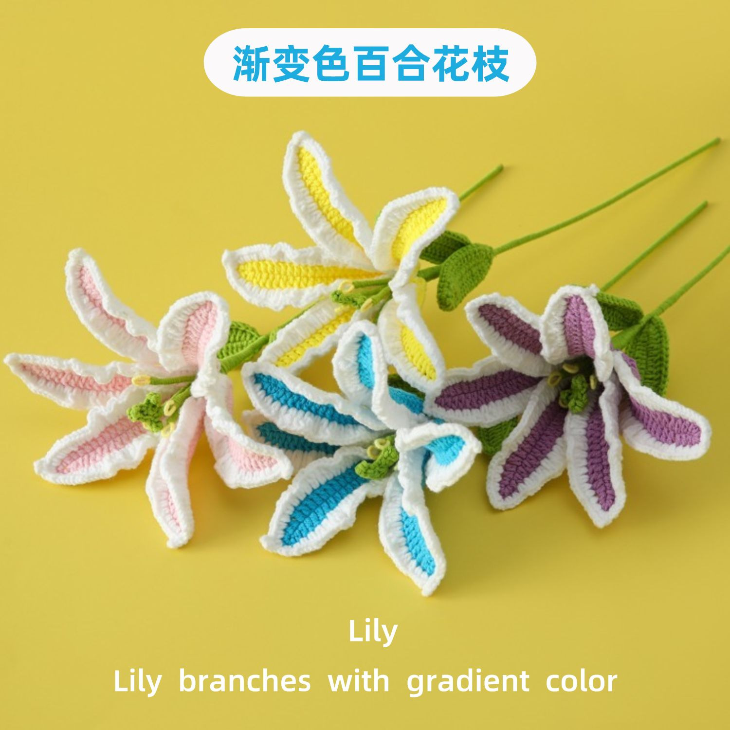 模造花永生花は目上の人に雪フィル線グラデーション色百合花枝完成品手編みニットプレゼント