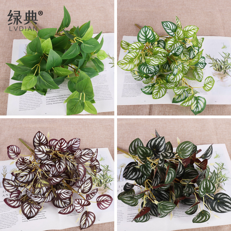 メーカー直販偽緑葉シミュレーションフィルム手触り保湿緑羅葉鶏心葉装飾緑植卸売り